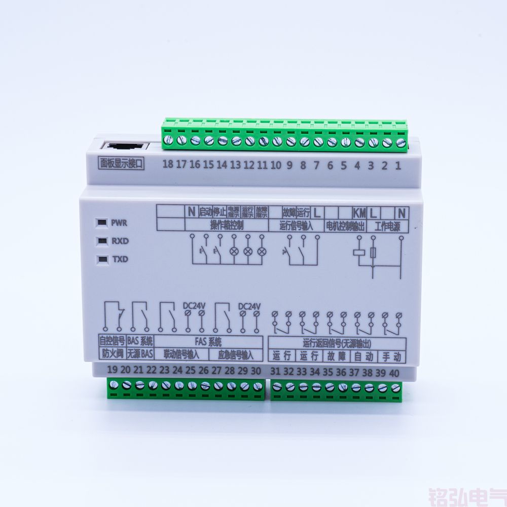 MH-PYFJ-1 单速风机控制器是简化风机控制二次回路设计,集成风机各种控制功能及外接接口(按键手动、现场手动按钮、远控信号、消防联动模块、应急控制、防火阀联动等接口).